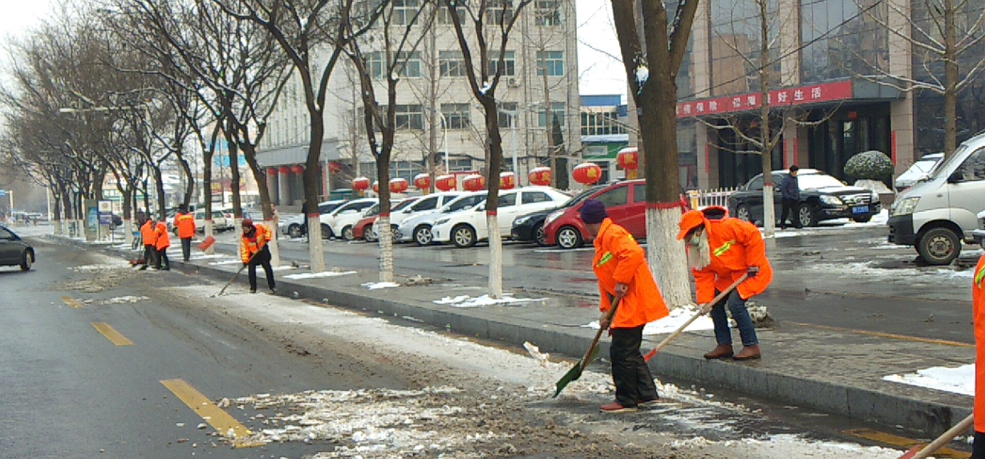 新年的第一場(chǎng)大雪,到處銀裝素裹,扮美了整個(gè)晉城,但大雪帶來美景的同時(shí),也給大家的出行帶來了不便。為保障大雪期間出行安全,潔霸公司各保潔點(diǎn)的負(fù)責(zé)人積極組織員工進(jìn)行主干道積雪清掃,在除雪過程中,雖然天氣寒冷,但大家除雪的熱情卻不減,大家有的撒融雪劑,有的 清掃積雪,有的用鏟子除冰,奏響鏟雪破冰進(jìn)行曲。