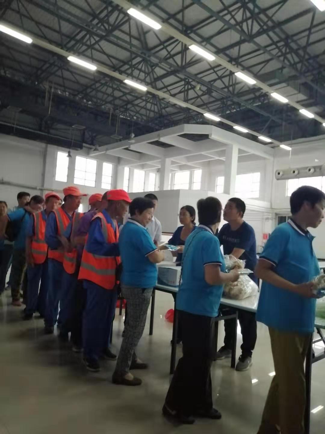 在富士康餐廳二樓,利用工作人員切西瓜的間隙,公司總經(jīng)理程晉軍作了簡短的講話。他說,前一段時(shí)間,公司召開了“安康杯”勞動(dòng)競賽動(dòng)員大會,大家要提高安全意識,始終把安全工作放在心上。他囑托大家在夏季工作中一定要注意防暑,感謝大家在酷暑下依舊兢兢業(yè)業(yè)奮斗在各自的工作崗位上。工會主席崔偉也作了簡要發(fā)言,他說,今年是潔霸公司成立二十周年,希望大家在工作中繼續(xù)發(fā)揚(yáng)潔霸精神,積極樹立潔霸形象,為公司爭光。