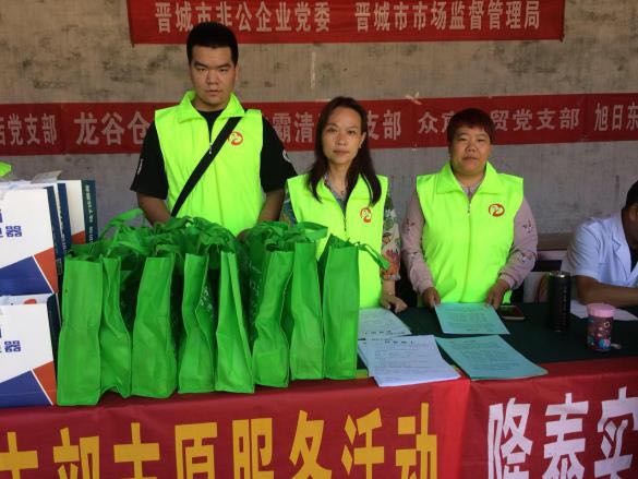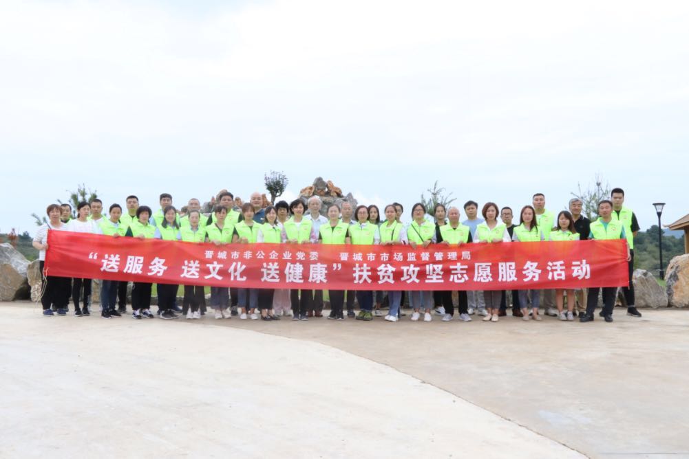 此次活動(dòng)由晉城市市場(chǎng)監(jiān)督管理局和市非公企業(yè)黨委領(lǐng)導(dǎo)帶隊(duì),非公黨委下屬的潔霸清潔、神利電器、隆泰實(shí)業(yè)、龍谷倉等九個(gè)支部的黨員志愿者30余人參加,活動(dòng)旨在關(guān)愛弱勢(shì)群體,提供志愿服務(wù),弘揚(yáng)黨員志愿者精神,切實(shí)發(fā)揮文明單位的引領(lǐng)示范作用,送文化和健康下鄉(xiāng),助力晉城市扶貧攻堅(jiān)行動(dòng)。