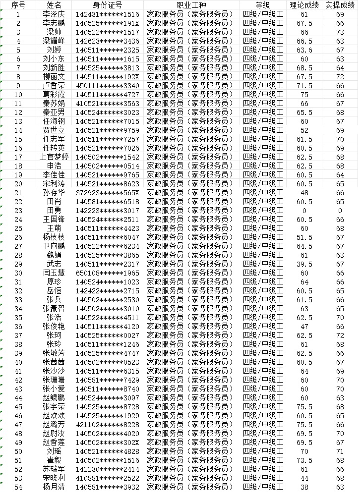 2024年1月21日上午第3批家政服務員中級認定人員成績公示