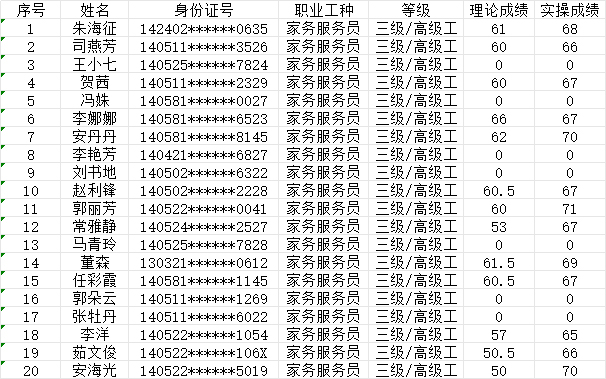 2024年7月14日第6批家政服務(wù)員高級認(rèn)定人員成績公示