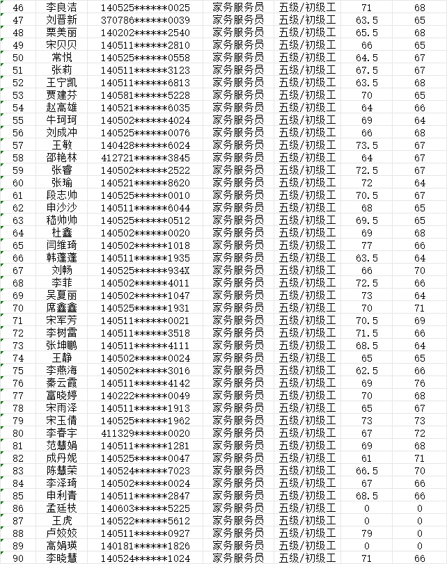 2024年9月28日第40批家政服務(wù)員初級(jí)認(rèn)定人員成績(jī)公示