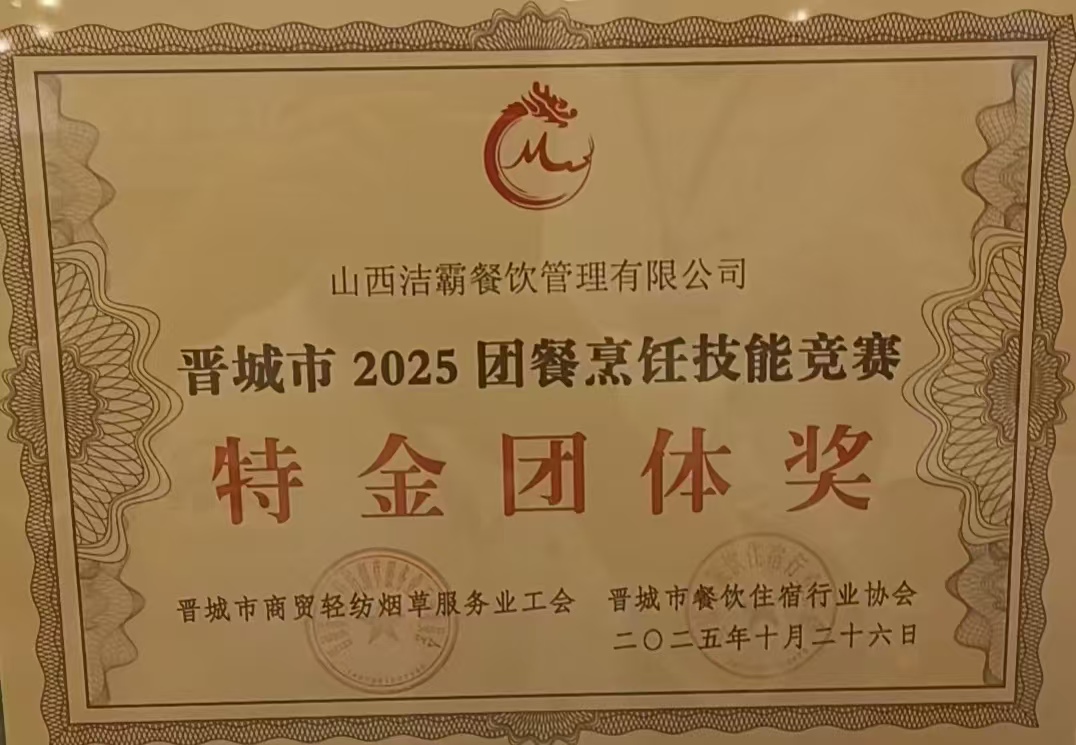 10月26日,由晉城市總工會、晉城市商務局、晉城市人力資源和社會保障局主辦,晉城市商貿輕紡煙草服務業(yè)工會委員會、晉城市餐飲住宿行業(yè)協(xié)會承辦的“情系職工 美好食光”晉城市2025團餐烹飪技能競賽在高都大酒店圓滿落幕,山西潔霸餐飲管理有限公司斬獲“特金團體獎”。